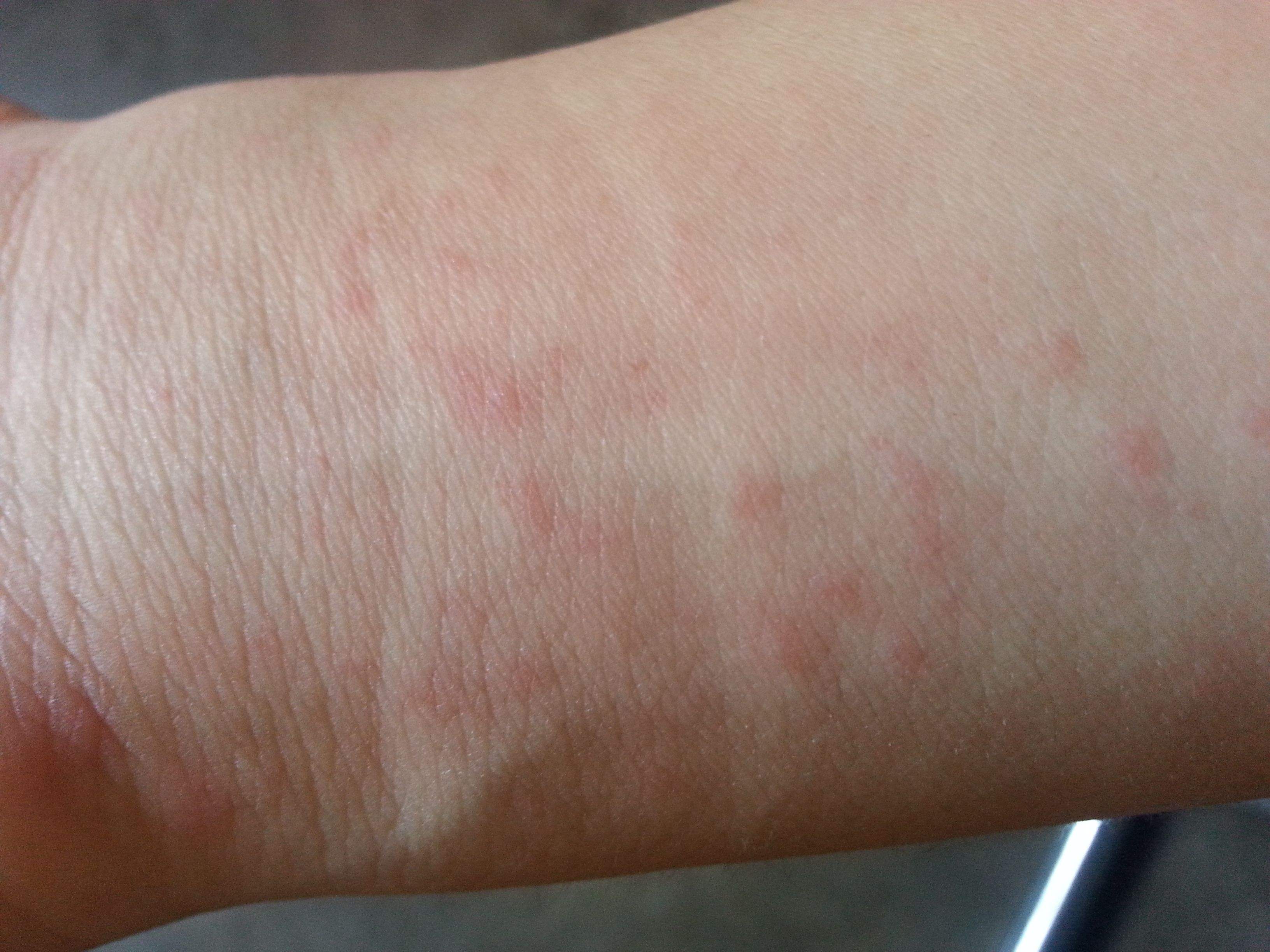 發(fā)生過(guò)敏性反應(yīng)時(shí),會(huì)伴隨令人難以忍受的瘙癢,通常開(kāi)始于夜間。瘙癢處的癥狀是發(fā)紅、發(fā)燙,有時(shí)候會(huì)突起,邊界清楚,有時(shí)候會(huì)有痛感。在一般情況下,過(guò)敏的部位會(huì)恢復(fù)原狀,除了在較黑的皮膚處,有可能留下淺色的瘢痕。